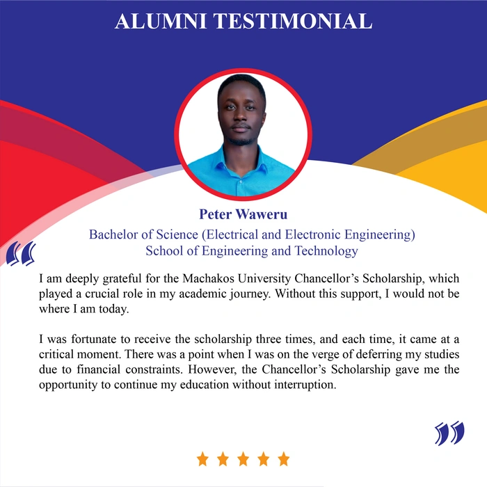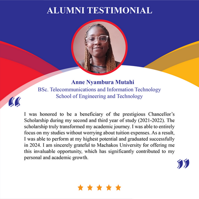 Under Dr. Mworia’s tenure, Machakos University has prioritized academic growth and student empowerment. One of his notable contributions is the establishment of a Chancellor’s scholarship Scheme in 2016 to support financially constrained students pursuing STEM-based programs (Science, Technology, Engineering, and Mathematics). The initiative, aimed at strengthening capacity in STEM fields, has so far empowered 101 students, with 78 already graduated, and some have successfully secured gainful employment in the job market. The scholarship primarily supports high-performing but needy students in the following Schools: